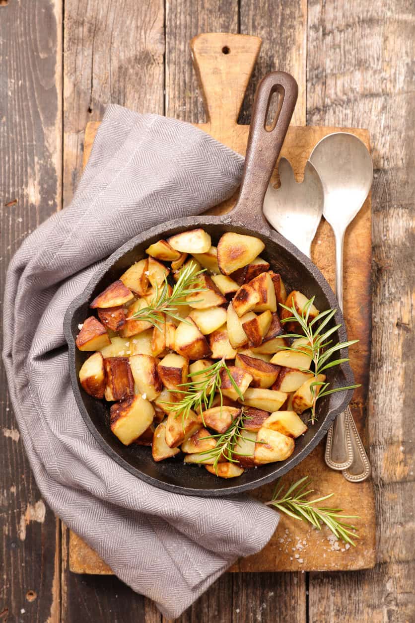 grilled potato with rosemary in pan
