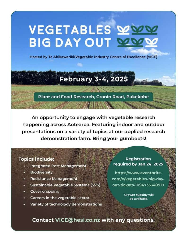 Growers, you are encouraged to join the Vegetables Big Day Out on 3-4 February 2025. With indoor and outdoor sessions on recent research activity and insights from across the country, it is a must attend event.