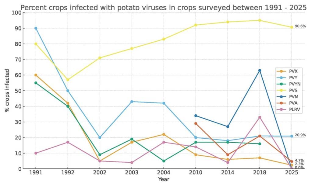 - See the graph below for the virus survey results to date. Please note the 2018 datum for PVM is not correct – a lab error resulted in false positives.